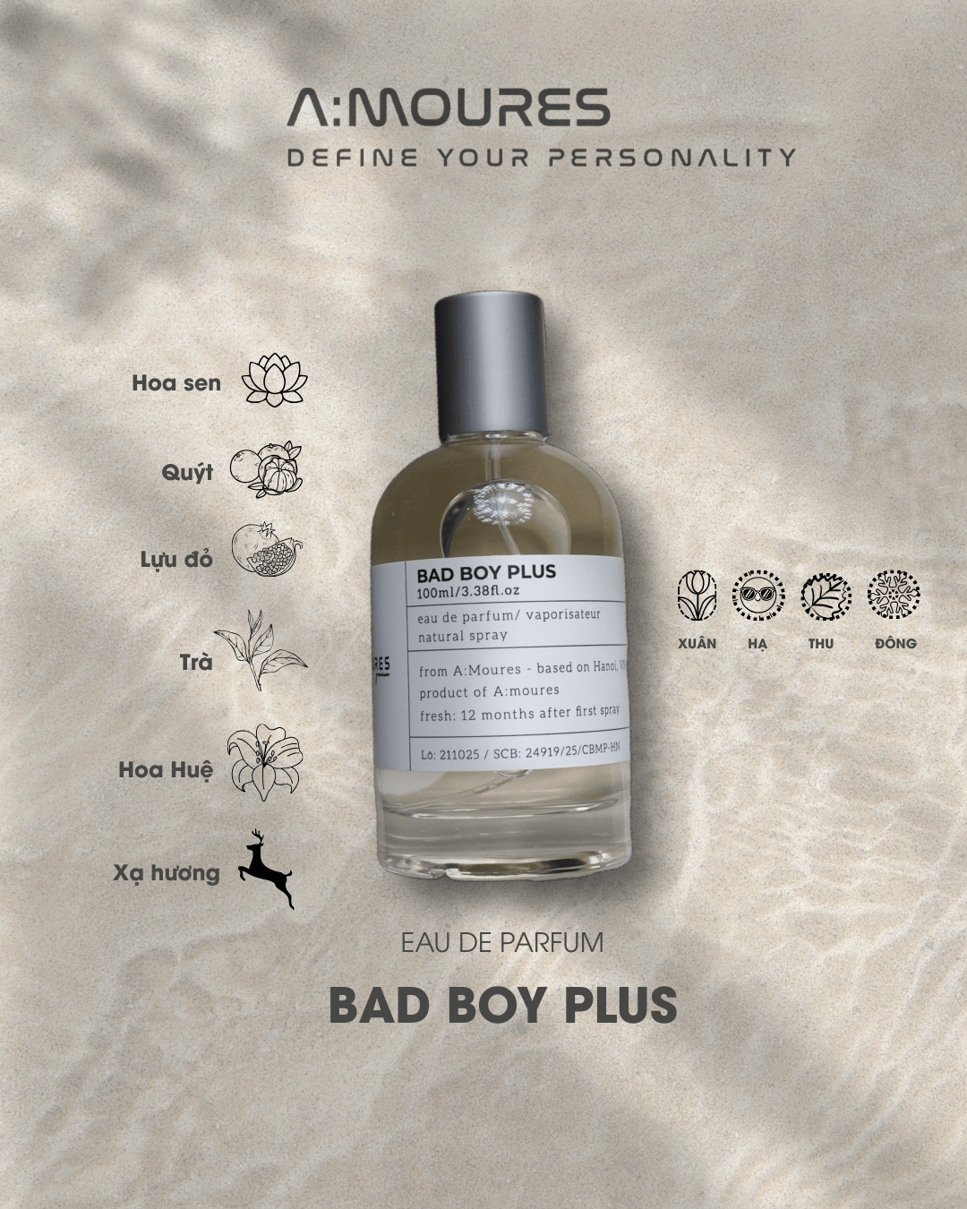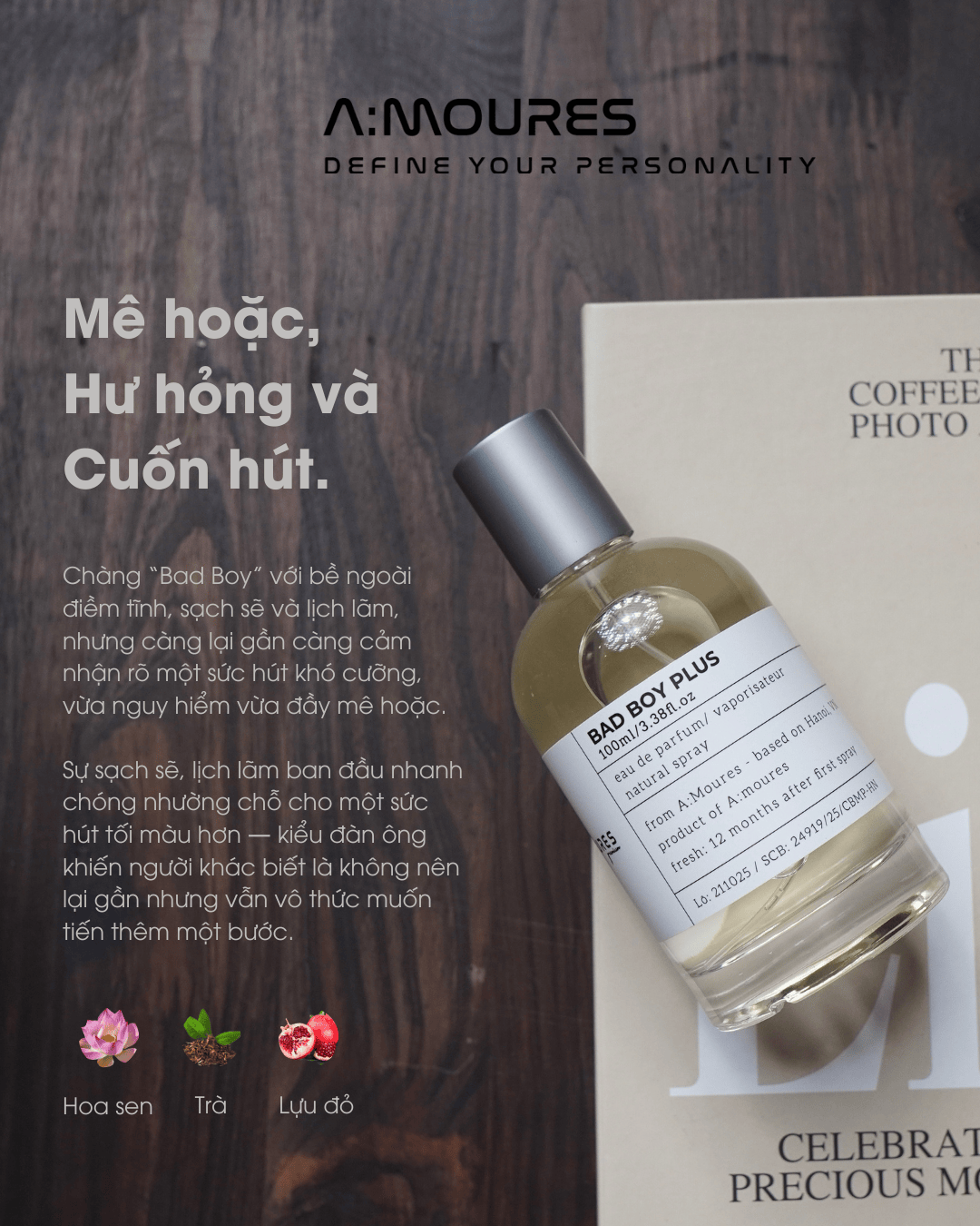 Khép lại là gỗ đàn hương, gỗ tuyết tùng và xạ hương ấm áp, mạnh mẽ, để lại dấu ấn nam tính trầm ổn, sang trọng và đầy sức hút.